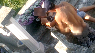 Imaginile au fost surprinse in in cimitirul de pe strada Fagetului din Lugoj. Fara pic de rusine, cei doi „amorezati” s-au dezbracat si au facut sex chiar pe unul dintre morminte. Scenele au fost surprinse de un cititor tion.ro, care a trimis cateva imagini pe adresa redactiei. Acesta sustine ca, de frica, nu a sunat la Politie, insa spera ca oamenii legii sa se sesizeze si sa ii pedepseasca pe cei doi.