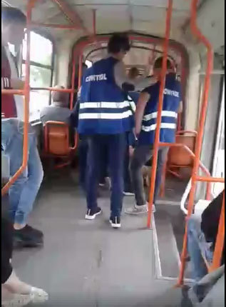 Scene socante in aceasta dimineata in tramvaiul 11 care circula prin Bucuresti. Controlorii au prins un tanar care circula fara bilet si l-au agresat fizic.
