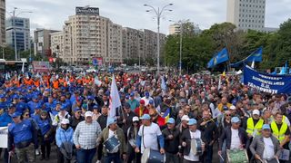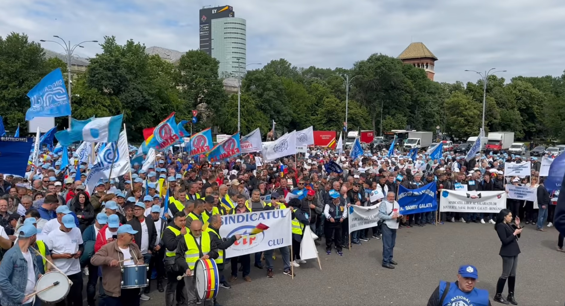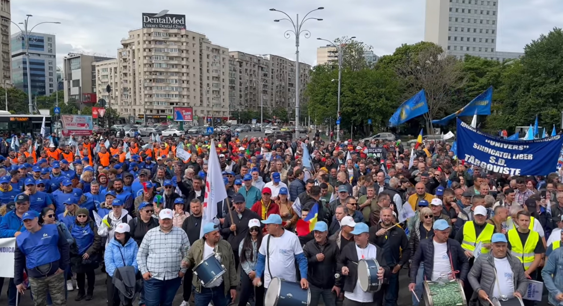 Sindicatele au organizat un protest luni, 13 mai 2024, în fața Guvernului României, sub sloganul „Respect pentru muncă și cei care muncesc! Lucrătorii din România nu mai vor să fie cobaii