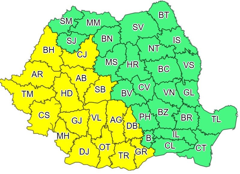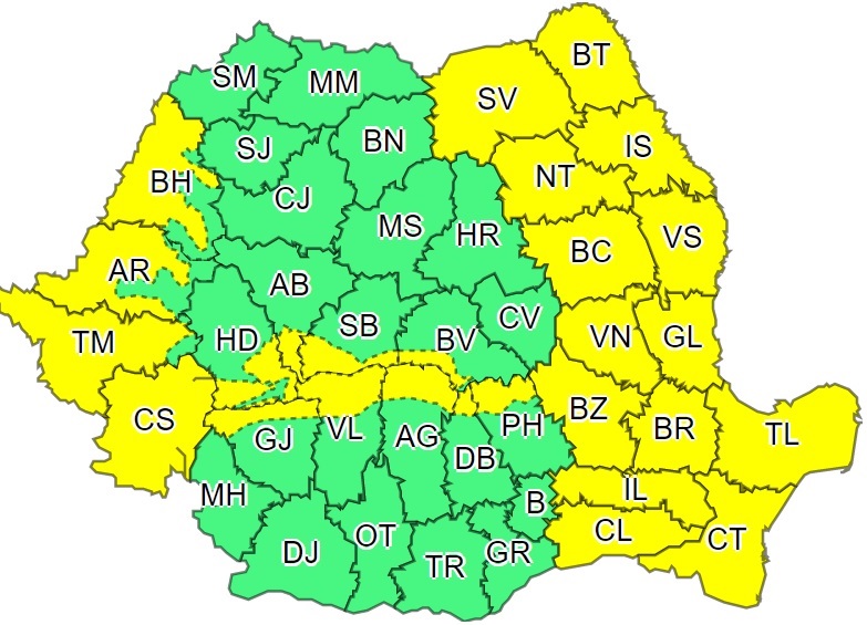 Citeste si: Cod galben de averse şi vânt în localităţi din judeţele Ialomiţa, Călăraşi şi Ilfov, luni dimineaţa