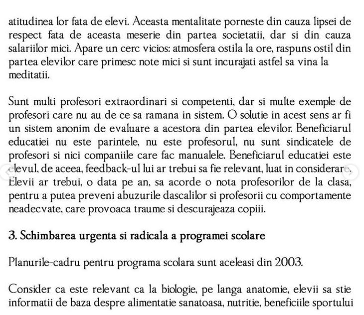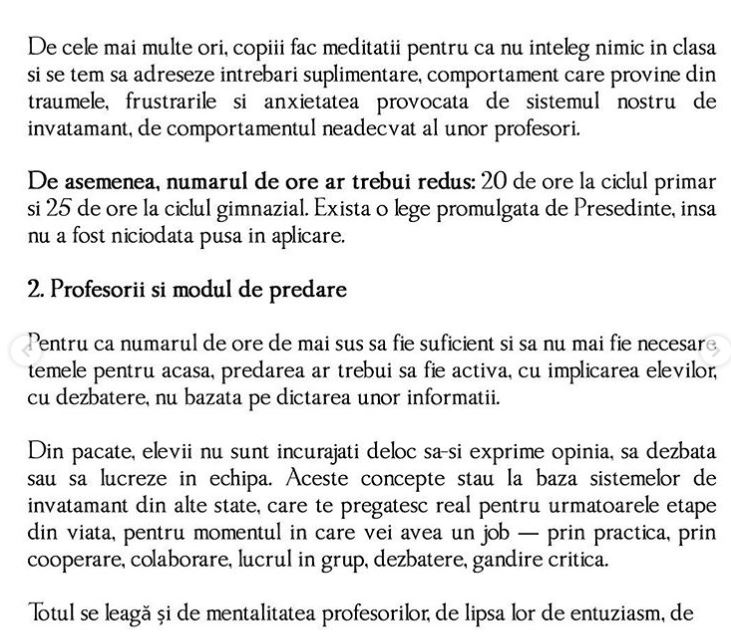 „CINE VREA SA SCHIMBAM SCOALA DIN 🇹🇩? Va rog sa cititi aceasta scrisoare si, daca sunteti de acord cu mesajul meu, sa o postati si voi pe wall, story, FB, oriunde, cu #VremOScoalaCaAfara #EducatiaSchimbaTot, sa o trimiteti la guvern, sa o trimiteti prietenilor.