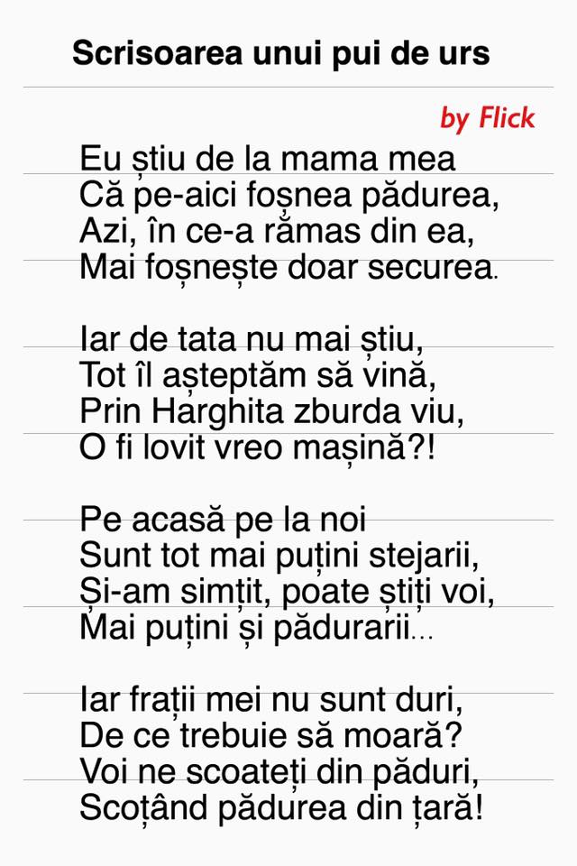 Flick a publicat o poezie care a devenit virală în urma incidentului cu ursul din Harghita.