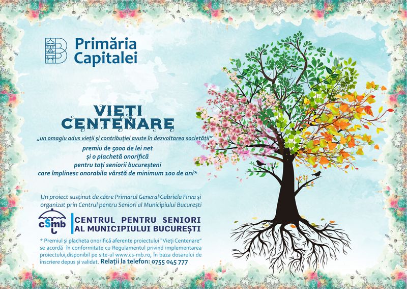 Toți seniorii bucureșteni care au împlinit vârsta de 100 de ani sau mai mult, cu domiciliul stabil în București, vor primi din partea Primăriei Capitalei, prin CSMB, suma de 5.000