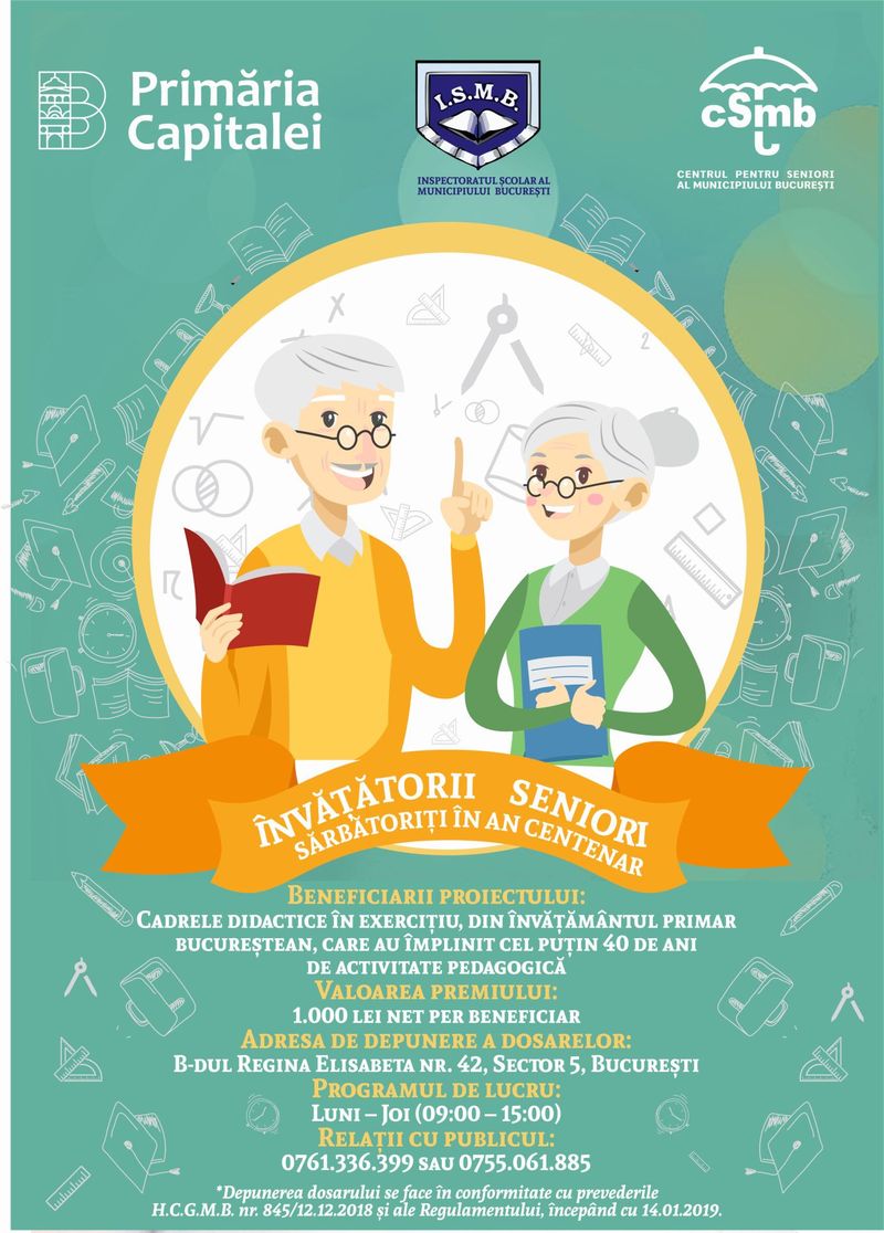 Alături de cererea-tip privind acordarea premiului aferent proiectului „ÎNVĂȚĂTORII SENIORI- SĂRBĂTORIȚI ÎN AN CENTENAR”, solicitantul va trebui sa depună începând în perioada 14 ianuarie 2019- 14 martie 2019, următoarele documente: