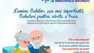 Primăria Capitalei prin Centrul pentru Seniori al Municipiului București (CSMB), demarează un nou proiect ce vine în sprijinul pensionarilor bucureșteni cu venituri reduse- ”Lumina ochilor, cea mai importantă. Ochelari pentru vârsta a treia”.