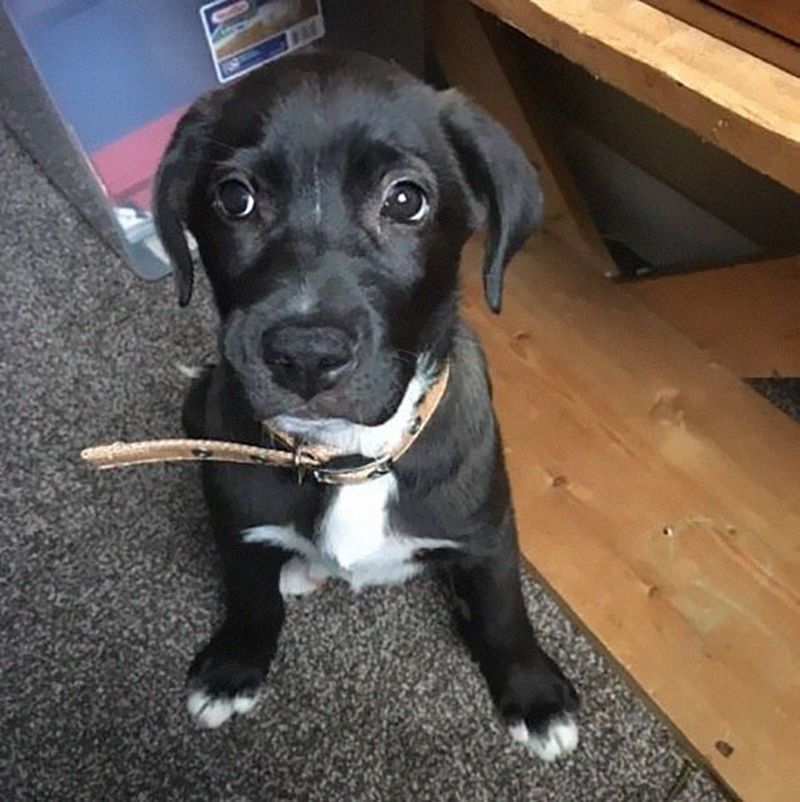 Cand a deschis punga a gasit inauntru un catelus adorabil abandonat, care purta zgarda.