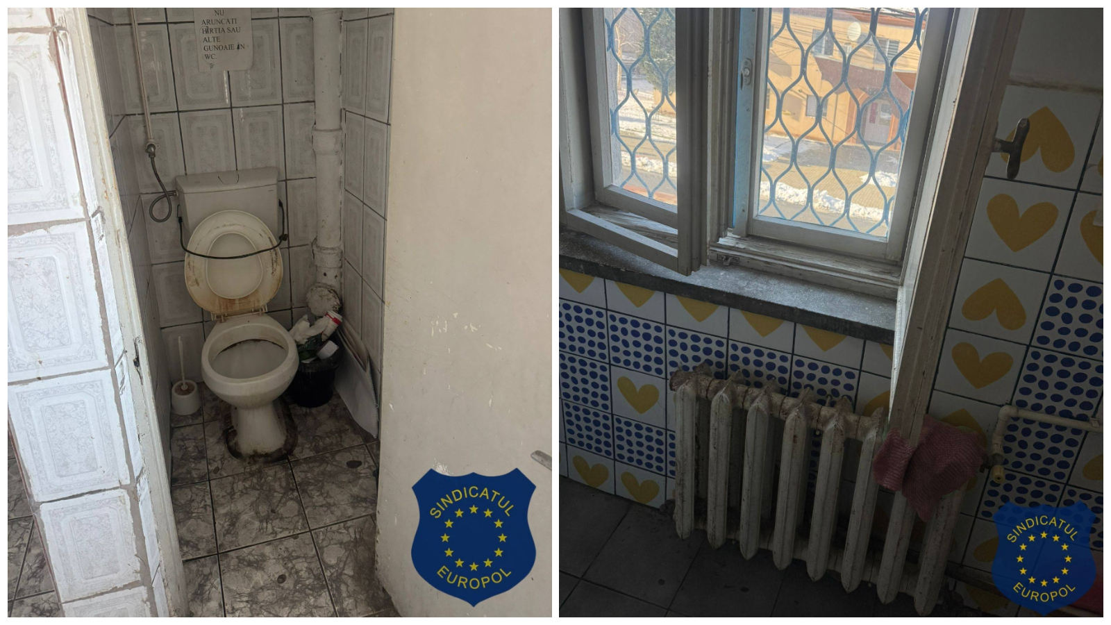 „În România „europeană” a anului 2026, polițiștii sunt obligați să muncească în condiții mizerabile: grupuri sanitare care arată ca gropile de gunoi; birouri încălzite cu improvizații periculoase, cu risc real de incendiu; umilință, dispreț și nepăsare instituțională”, scrie Sindicatul Europol într-o postare pe Facebook în care apar și fotografiile respective.