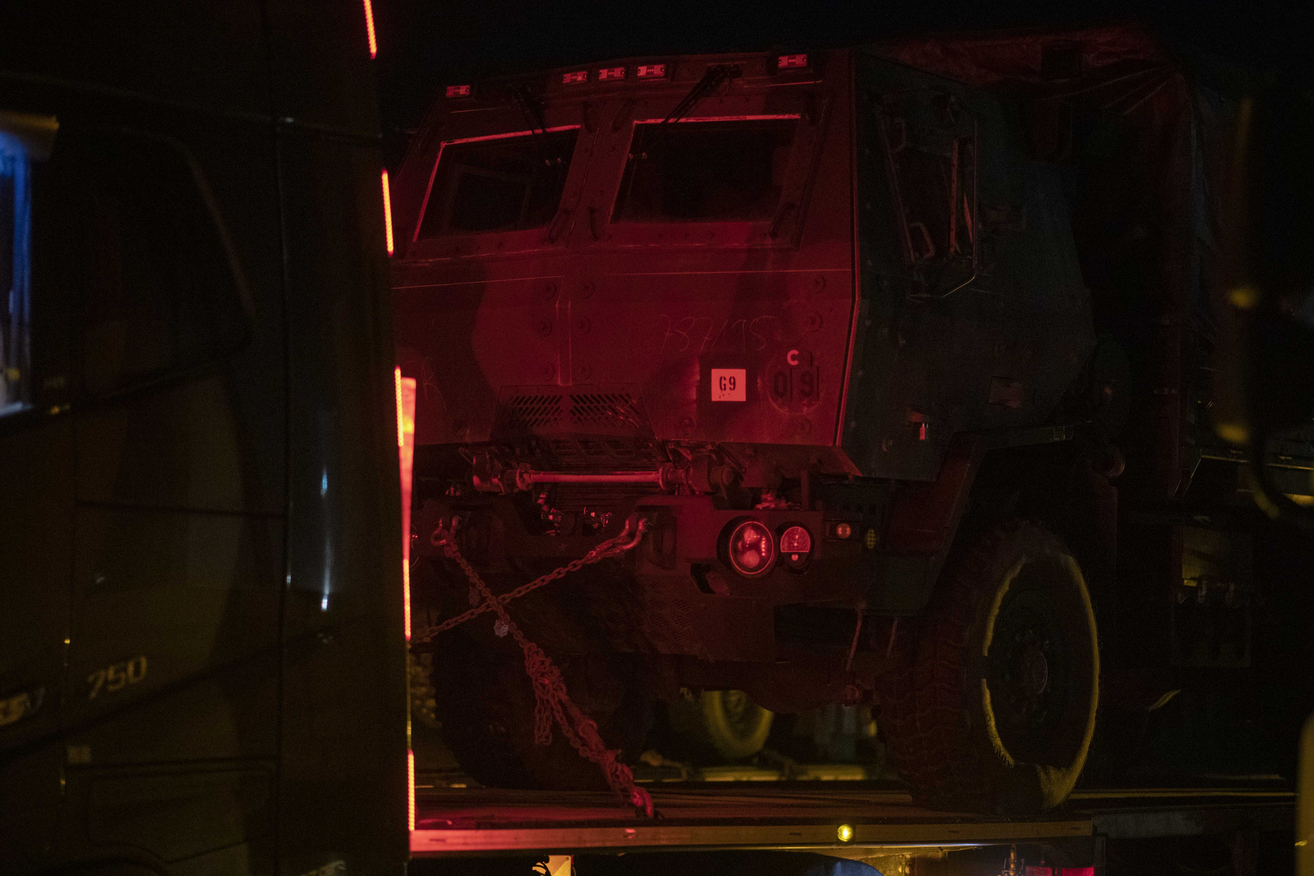 9 din 12 | Primele elemente de tehnica militara ale detasamentului SUA Task Force (TF) Cougar se regrupeaza dupa intrarea in Romania, intr-o parcare din apropierea Punctului de Trecere a Frontierei Nadlac, 9 februarie 2022. Inquam Photos / Cornel Putan