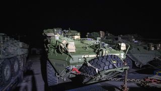 Primele imagini cu coloana de trailere cu tehnică militară americană