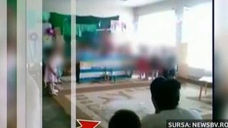 Pare de necrezut, dar educatoarea si parintii decid sa continue serbarea. Ba chiar incep sa rada. Singurii care par a fi constienti de pericol sunt micutii. Vocile lor abia se mai aud, semn ca au fost speriati de incidentul care i-ar fi putut rani!