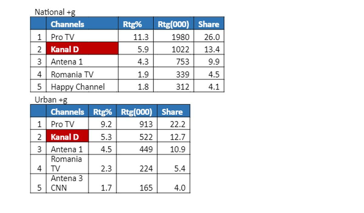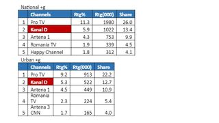 Marți, 20 februarie, Kanal D s-a clasat pe locul doi, pe două categorii de public, pe întreaga durată de difuzare a serialului “O dragoste” (20:00 – 22:30).