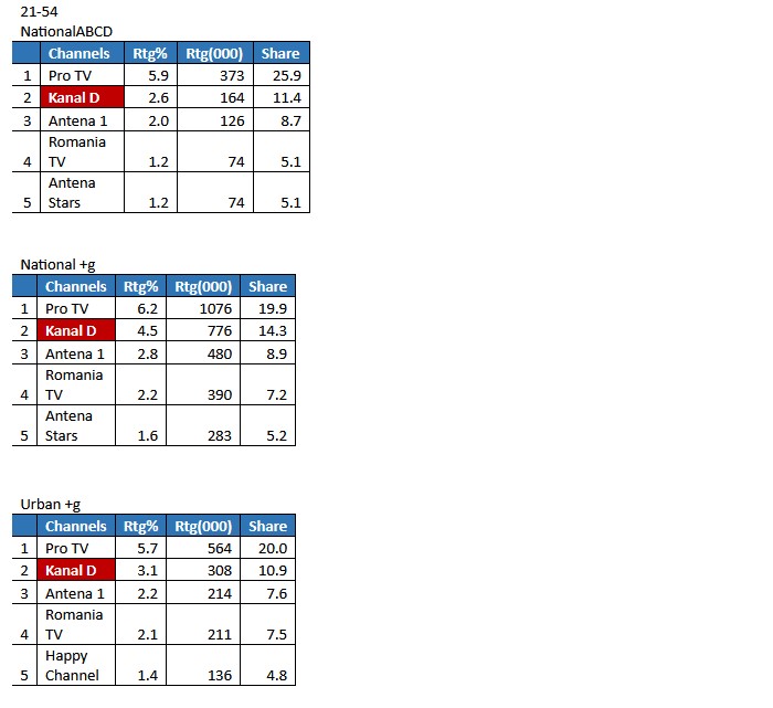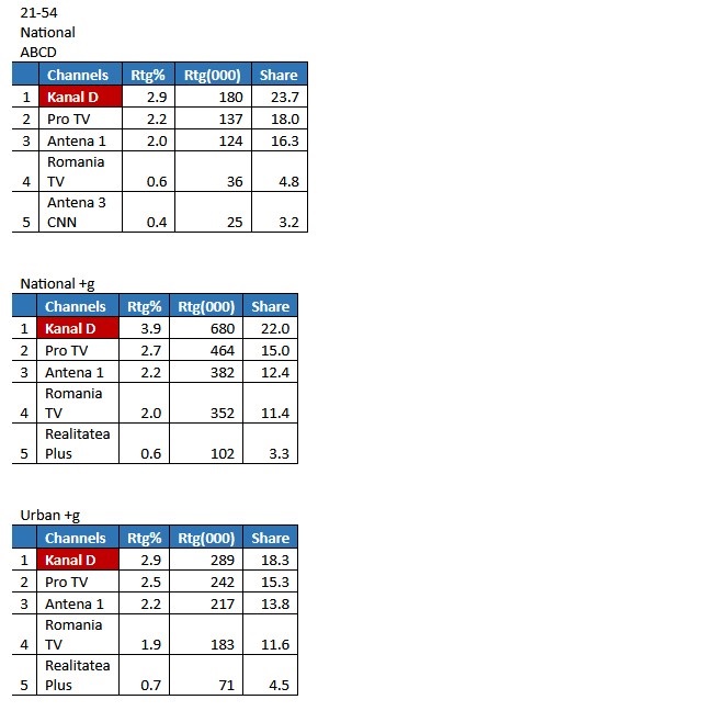 Audiente interval 10:00- 12:00, sursa Kantar Media Romania
