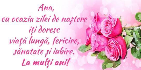 Este ziua numelui tău! La Mulți Ani!”E ziua ta, Ana, un nume frumos și simplu, la fel de pur ca tine și la fel de gingaș. La mulți ani, Ana!