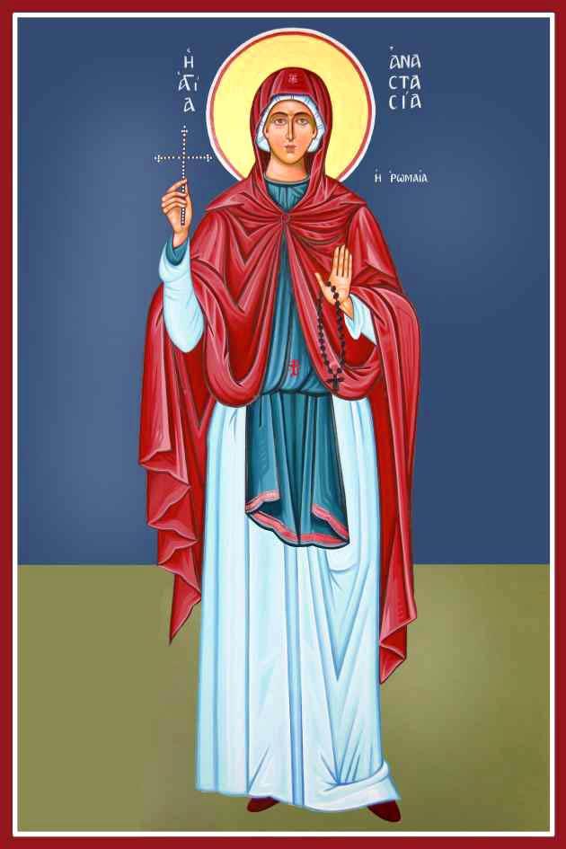 Sfânta Anastasia a trăit pe vremea împăraților păgâni Deciu (249-253) și Valerian (253-260). La vârsta de trei ani a rămas orfană de ambii părinți.