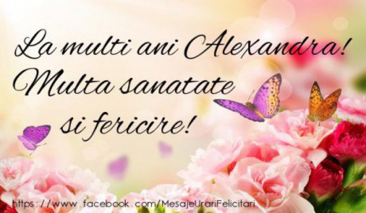 De toţi ai fost tu azi numit, în lăcaş Sfânt chiar pomenit! Mă alipesc gingaş şi eu, dorindu-ţi bine mereu. Numele ce-l porţi de Sfânt, poartă-l cu mândrie multă! Să-ţi dea putere şi tărie, ani sănătoşi şi bucurie! Un înger păzitor.. îţi doresc eu ţie! La mulţi ani, Alexandra!