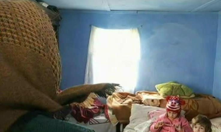 „Eu dorm cu copiii aici. Am vopsit, dar curgea apa. Si aici doarme el singur si eu aici cu copiii”, spune bunica lor.