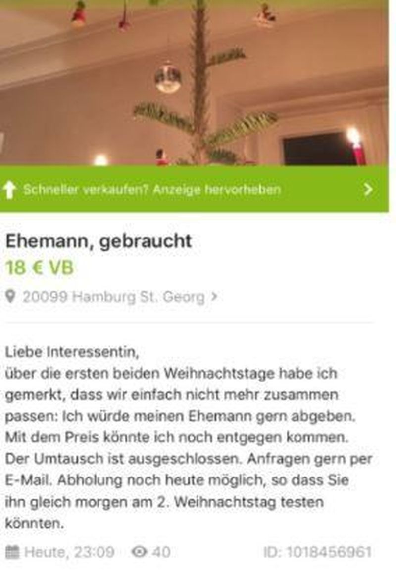 "Dragi femei care ați putea să fiți interesate, După primele două zile de Crăciun am realizat că eu și el pur și simplu nu mai funcționăm împreună. Aș vrea să renunț la soțul meu. Sunt deschisă să negociez prețul. Dar nu accept schimb. Vă rog să-mi trimiteți cereri prin e-mail", a fost anunțul postat de femeie pe internet.