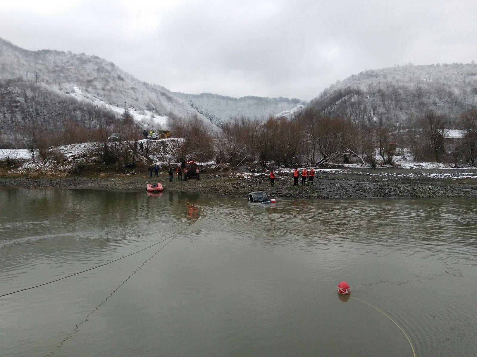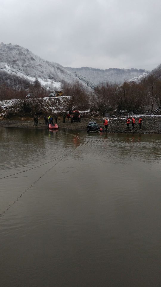 Sibiu: Barbat gasit decedat intr-o maşina cazuta in raul Olt şi scoasa de pompieri dupa doua zile de cautari