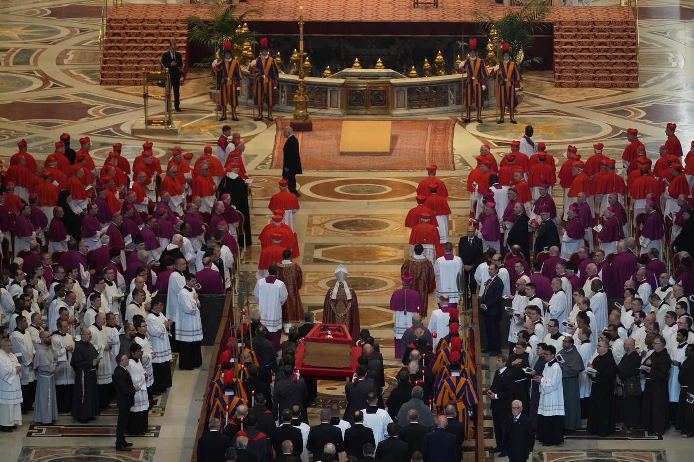 Ceremonia de transferare a fost condusă de cardinalul camerlengo Kevin Farrell, pe care Papa Francisc l-a nominalizat pentru acest rol încă din 2019.