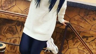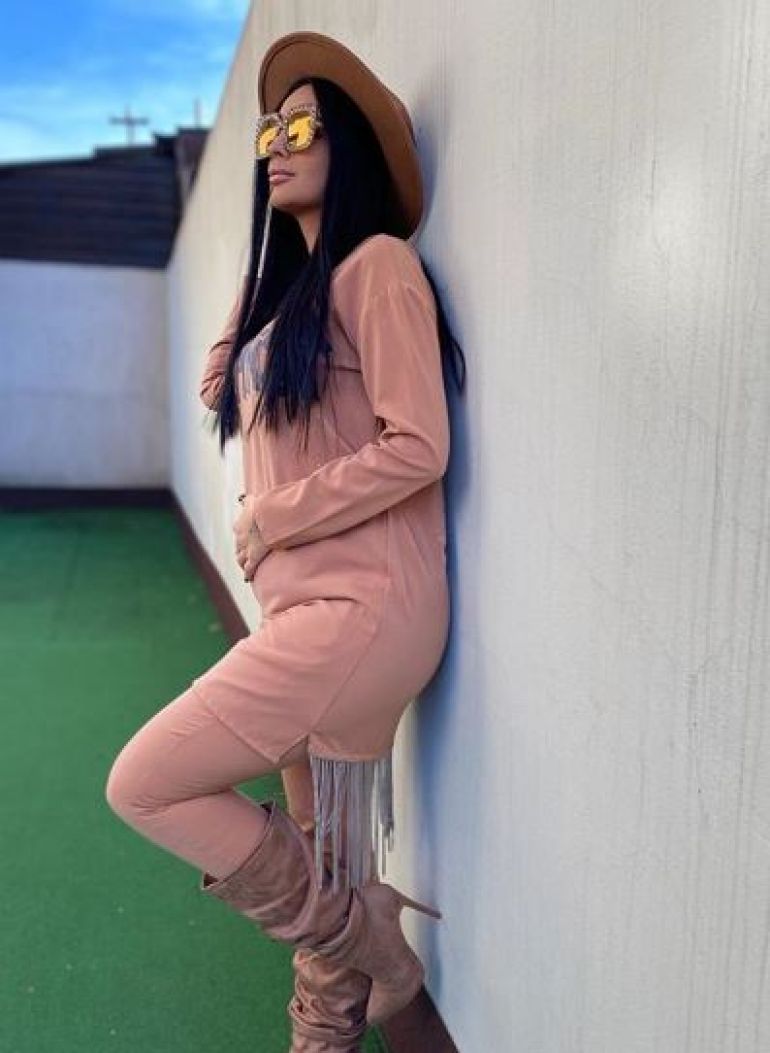 Însărcinată deja în câteva luni, nu-și mai poate feri burtica de gravidă.