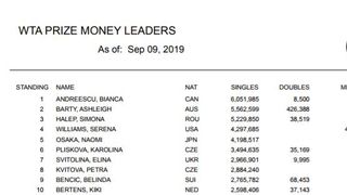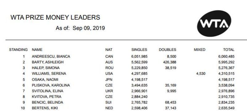 Evident, sumele încasate, până acum, pentru 2019, nu se vor încheia așa, Simona Halep având șansa să ajungă, dacă va avea meciuri bune și va mai câștiha câteva turnee, în fruntea topului banilor din tenisul feminin al acestui an, diferența dintre ea și cealaltă româncă din top, Bianca Andreescu, nefiind atât de mare.