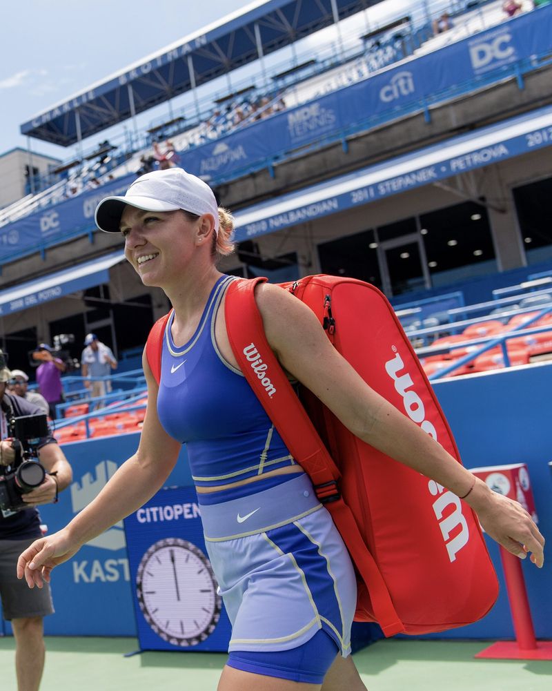 După ce a început partida cu jucătoarea din Spania, Simona Halep și-a dat jos tricoul galben și a purtat în meci o ținută complet albastră, cu o bandă galbenă la nivelul gâtului.