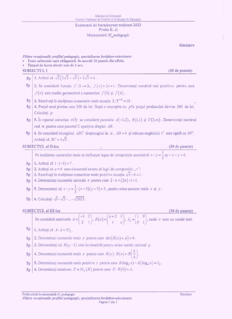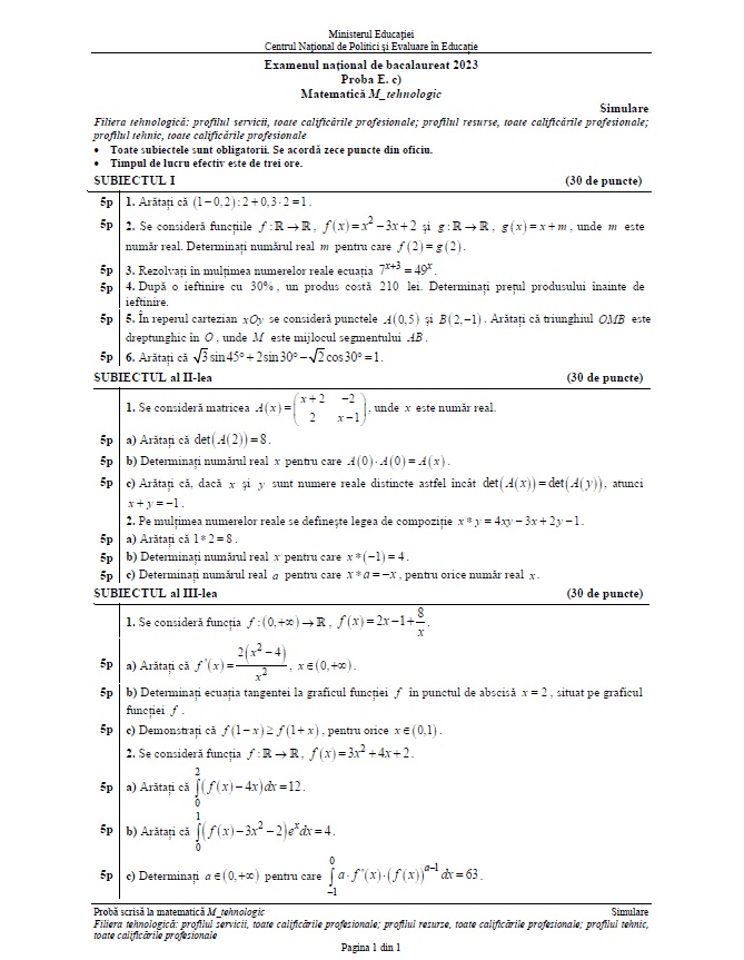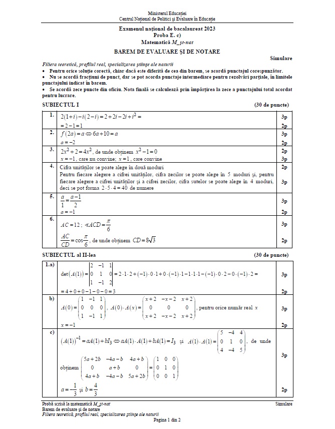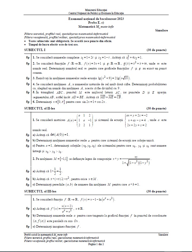 Citește și: Subiecte simulare BAC 2023 Matematică M1, M2, M3 şi M4. Baremul de corectare, pe EDU.ro