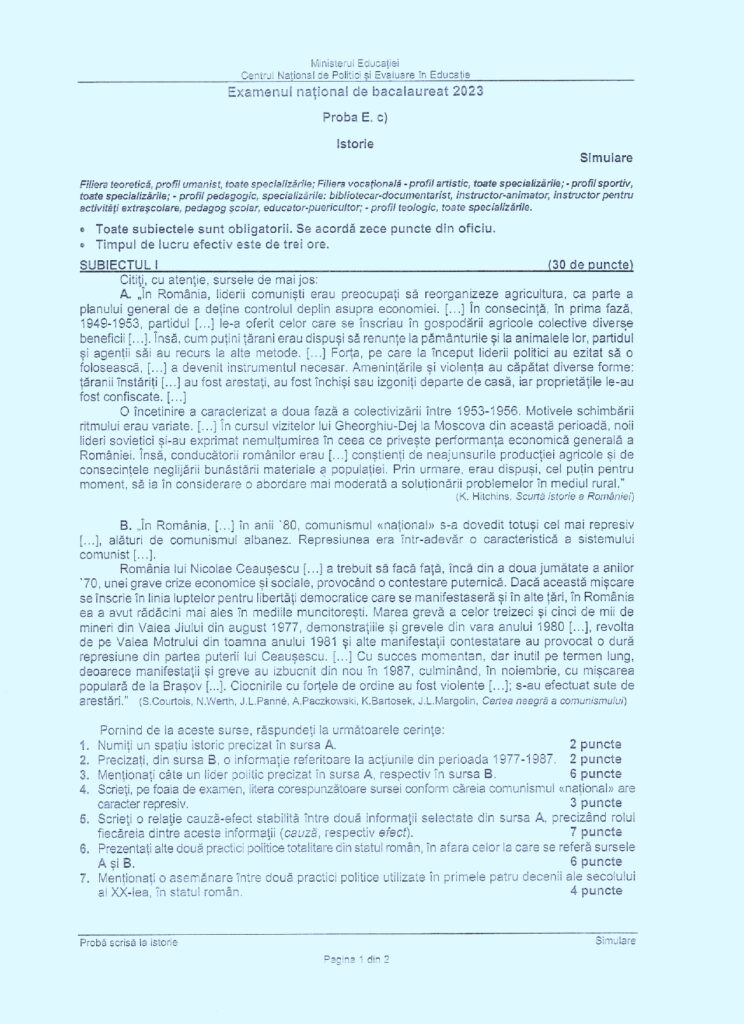Citește și: Subiecte simulare Istorie BAC 2023. Vezi ce subiecte au picat! Consultă baremul de corectare!