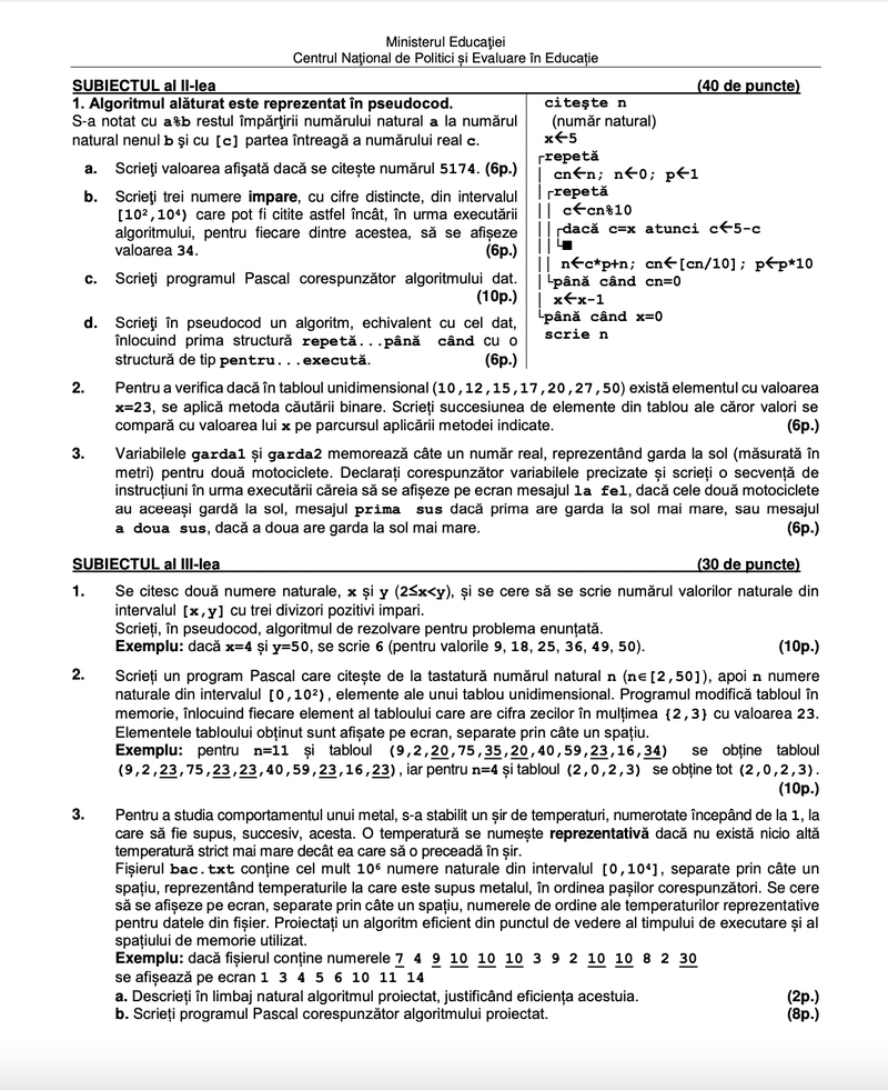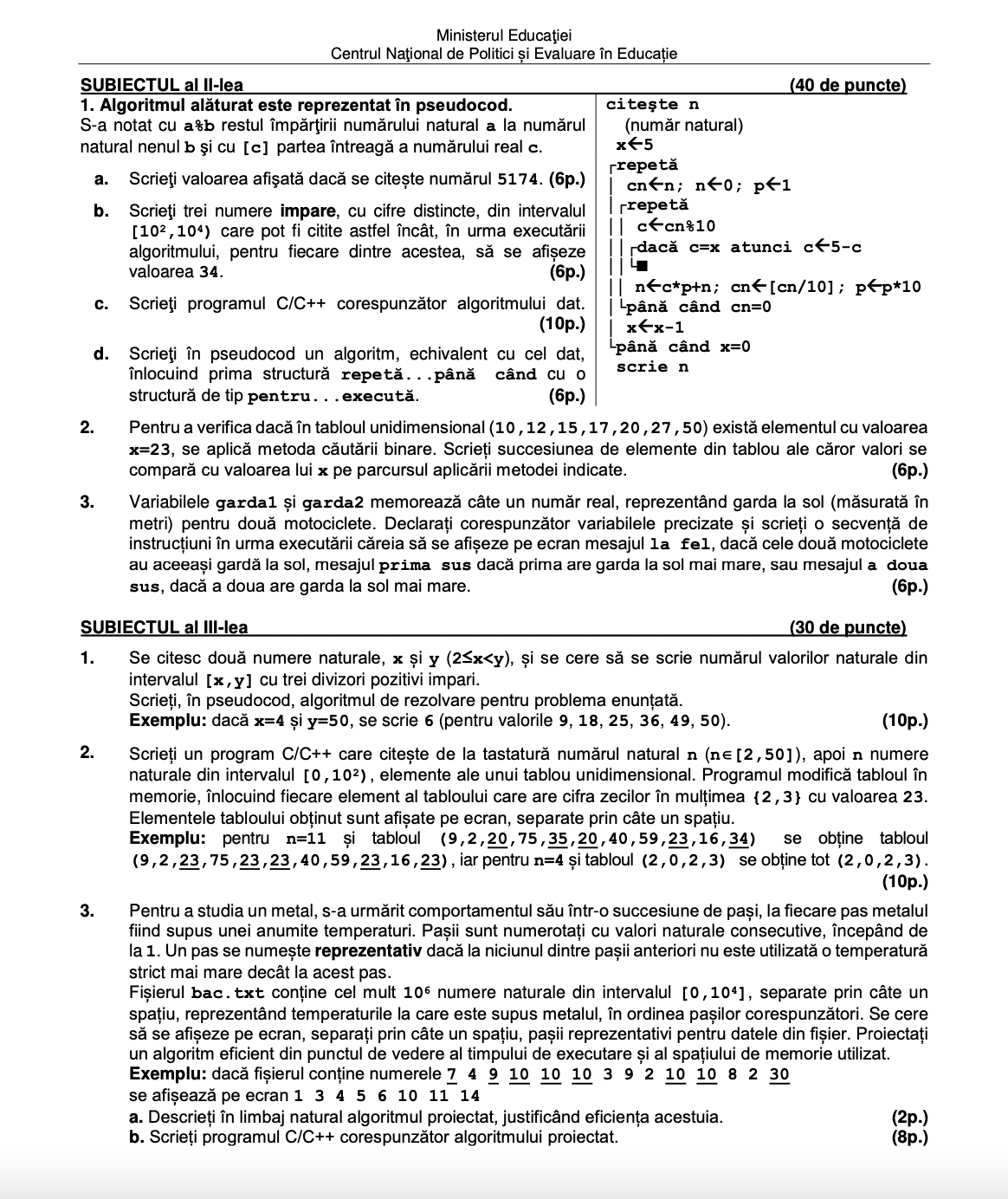 4 din 13 | Subiecte Informatică simulare BAC 2023? La ce oră se publică baremul de corectare pe Edu.ro?