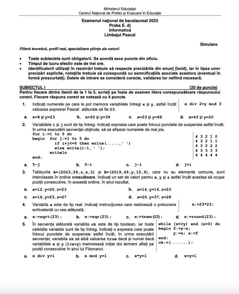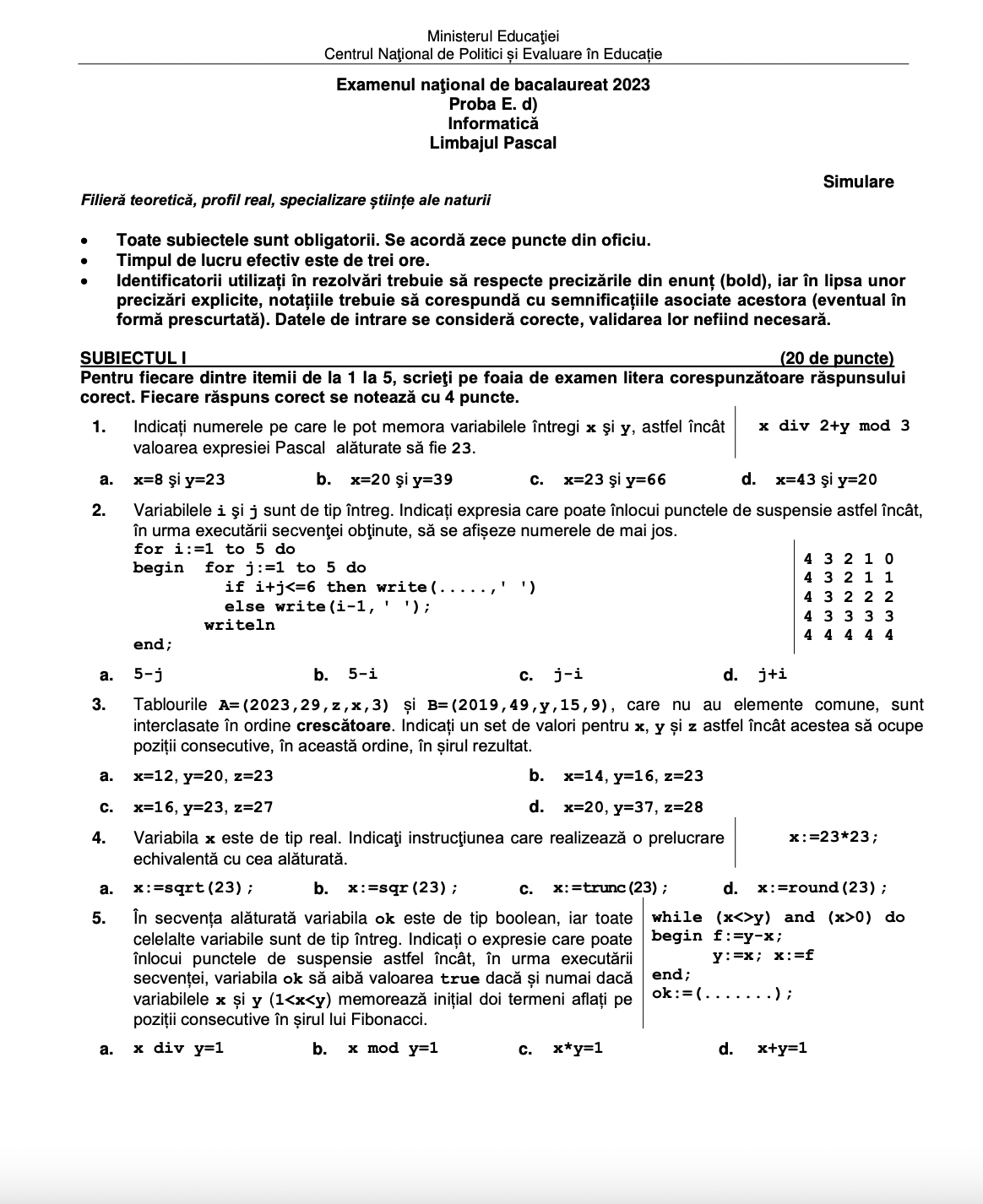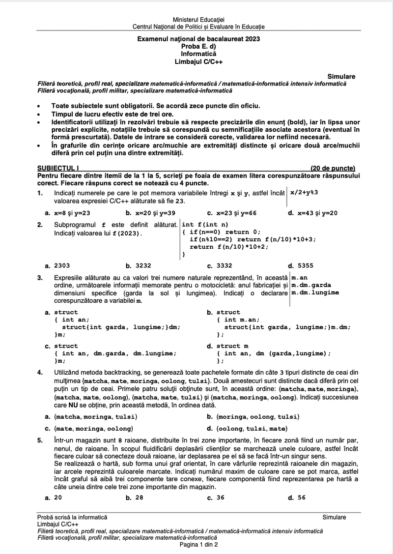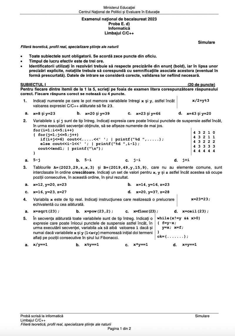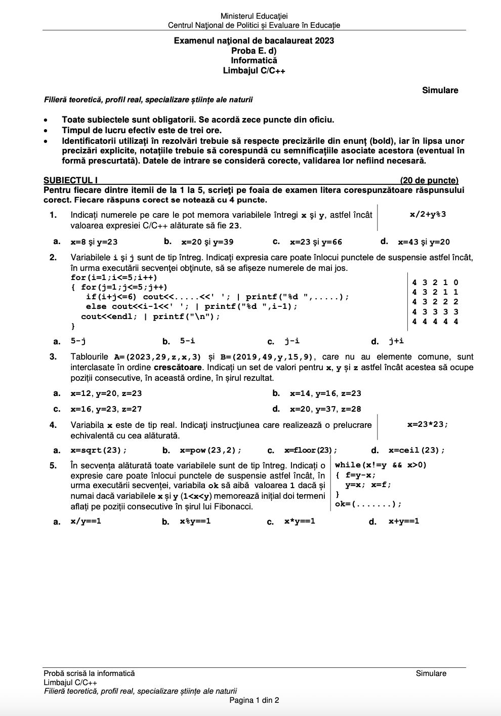 1 din 13 | Simulare BAC 2023 subiecte Informatică