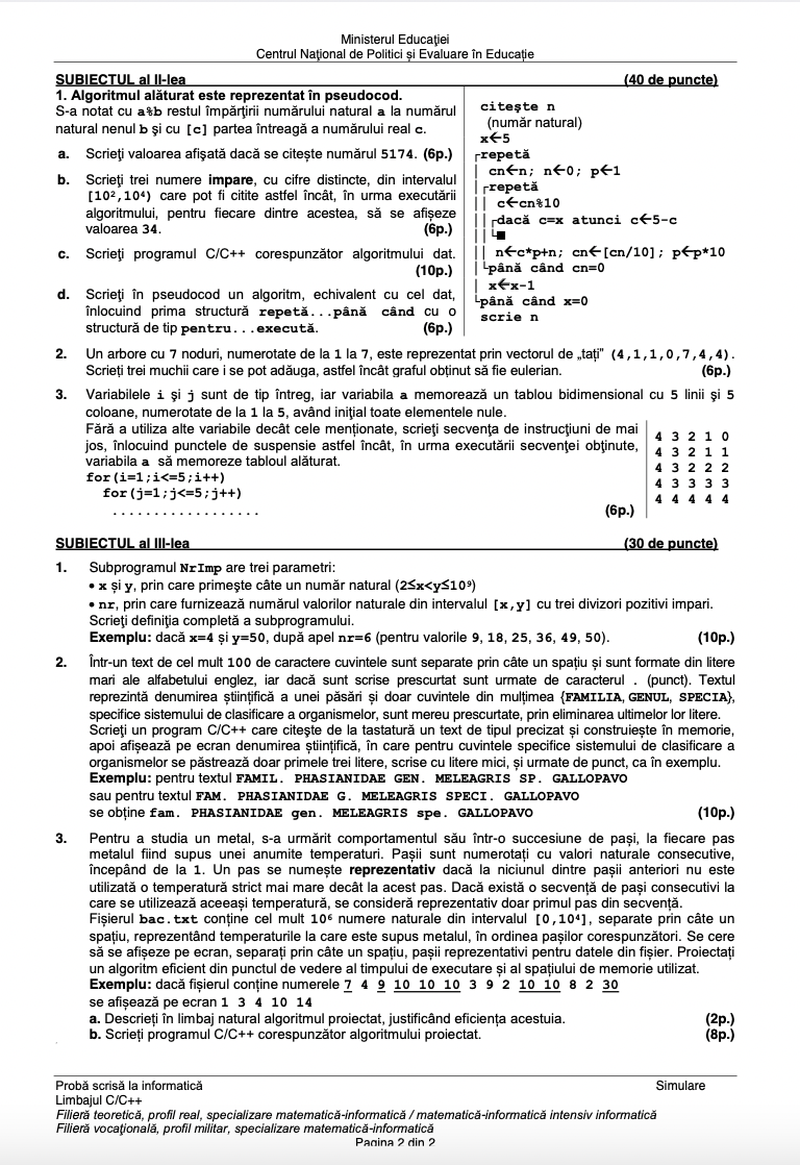 2 din 13 | Simulare BAC 2023 subiecte Informatică