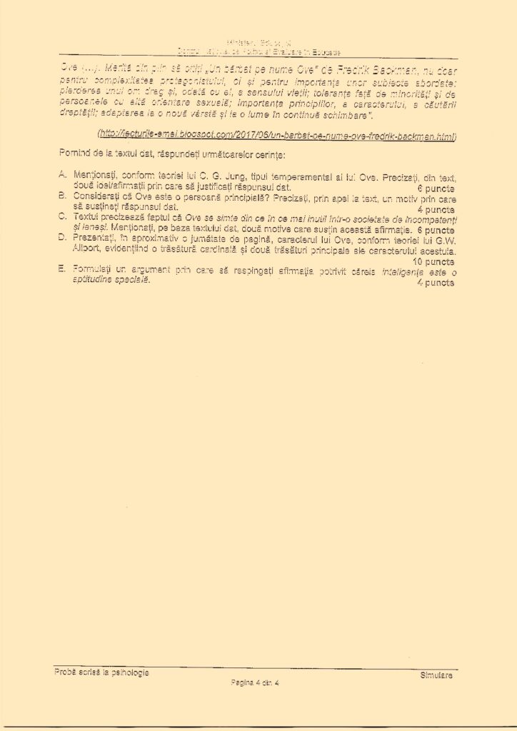 4 din 7 | Simulare BAC 2023 subiecte Psihologie. Vezi ce subiectete s-au dat! Baremul de corectare, pe EDU.ro!