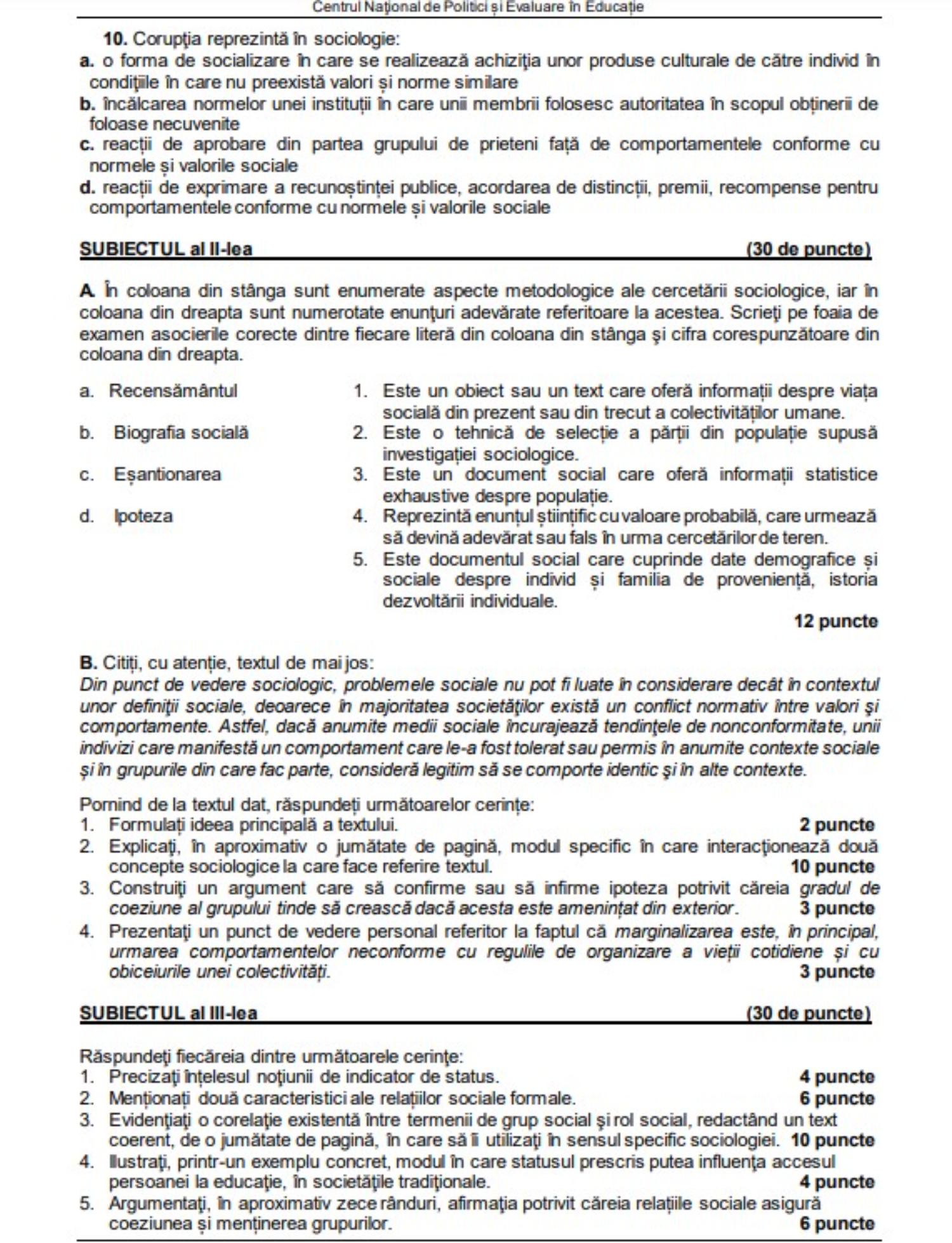 4 din 6 | Simulare BAC 2023 subiecte Sociologie. Posibile subiecte pentru proba la alegere!