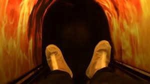 Cel ales este transportat pe o placa intr-un cuptor de crematoriu iar apoi readus la viata prin deschizatura unui pantec din latex.
