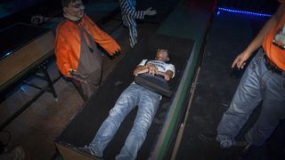 O distractie macabra pentru unii, insa o adevarata experienta pentru altii. Un parc de distractii din Shanghai a inventat un dispozitiv care iti permite sa experimentezi senzatia mortii.