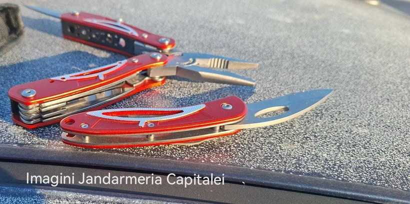 Unul dintre bărbați avea la el obiecte care puteau pune în pericol siguranța participanților. Este vorba despre un cuțit de tip briceag și de un patent cu lamă ascuțită.