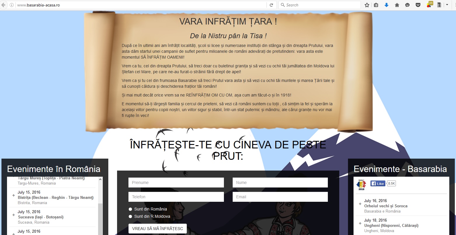 Site-ul se numeste basarabia-acasa.ro si poate sa infrateasca romanii din Romania cu cei din Republica Moldova.
