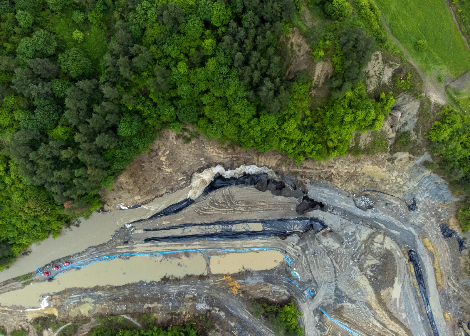 de metri se află în curs de transport pentru consolidarea suplimentară a zonei. De asemenea, au fost amplasați saci de nisip pentru a reduce presiunea exercitată de acumulările de apă și pentru a preveni eventuale inundații.