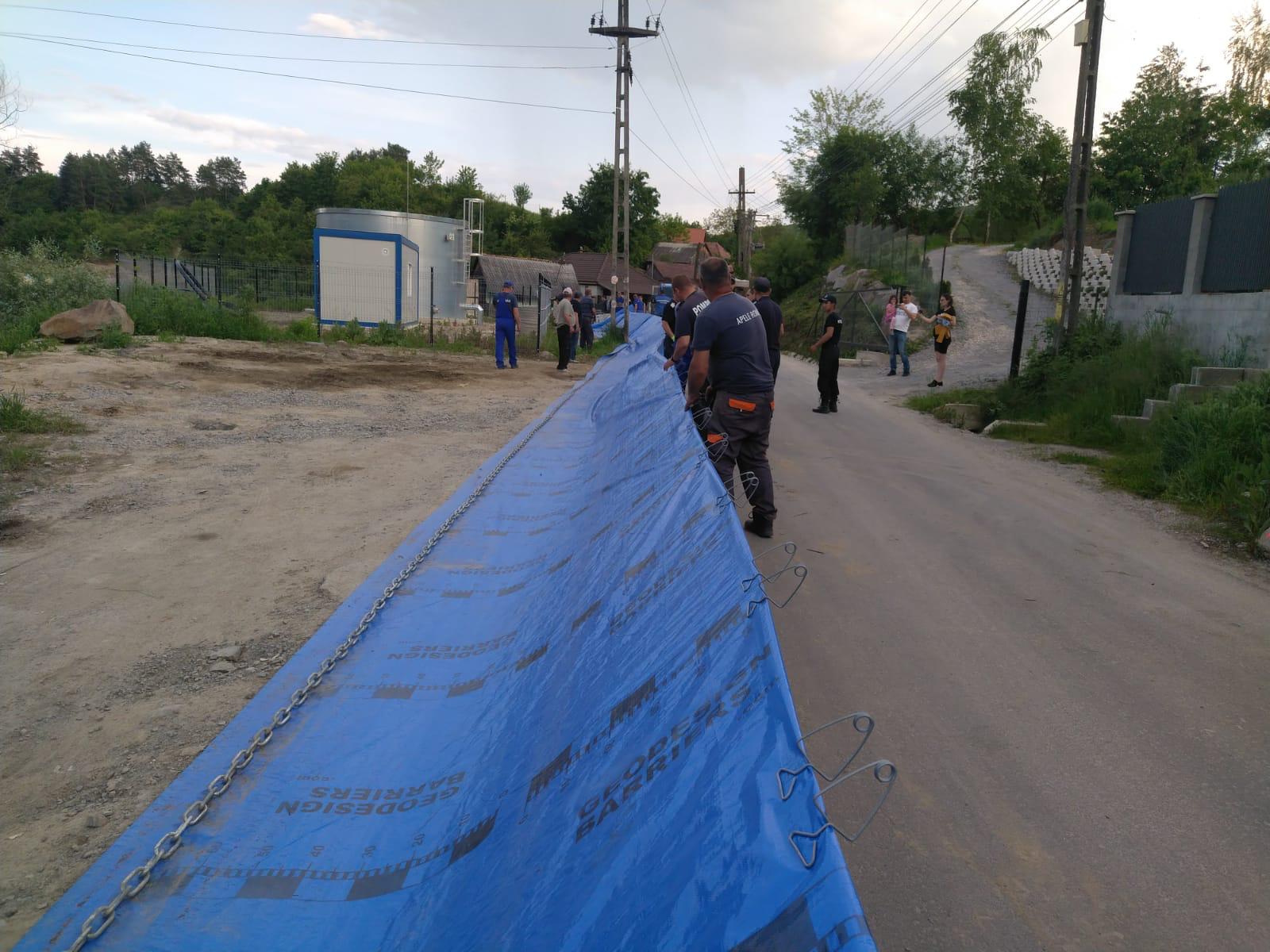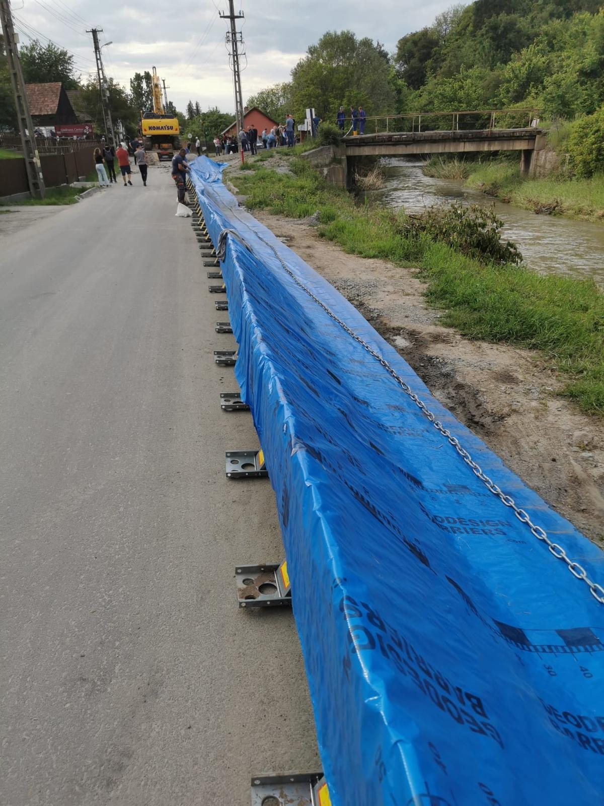 Echipe mixte formate din pompieri, polițiști, jandarmi, specialiști în gospodărirea apelor și personal al Salinei Praid intervin constant în zona afectată. Până în prezent, au fost montați 300 de metri de panouri de protecție, iar alți 1.500