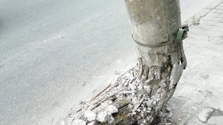 Pe strada Turda din sectorul 1 al Capitalei, se poate produce o adevărată tragedie din cauza unui stâlp care să cadă.