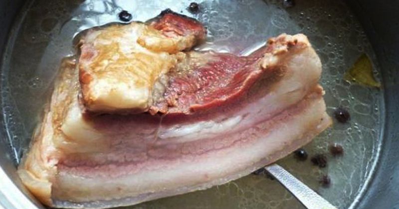 Pentru această specialitate tradițională, slănina se pune la fiert în zeama de varză la care se adaugă doi căței de usturoi tăiați feliuțe, foile de dafin, piperul și sarea.