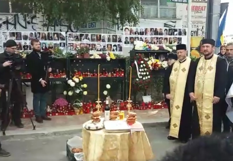 Un sobor de preoti, insotiti de oamenii care au venit sa aprinda o lumanare in memoria celor care au pierit, au participat la slujba de pomenire a victimelor.