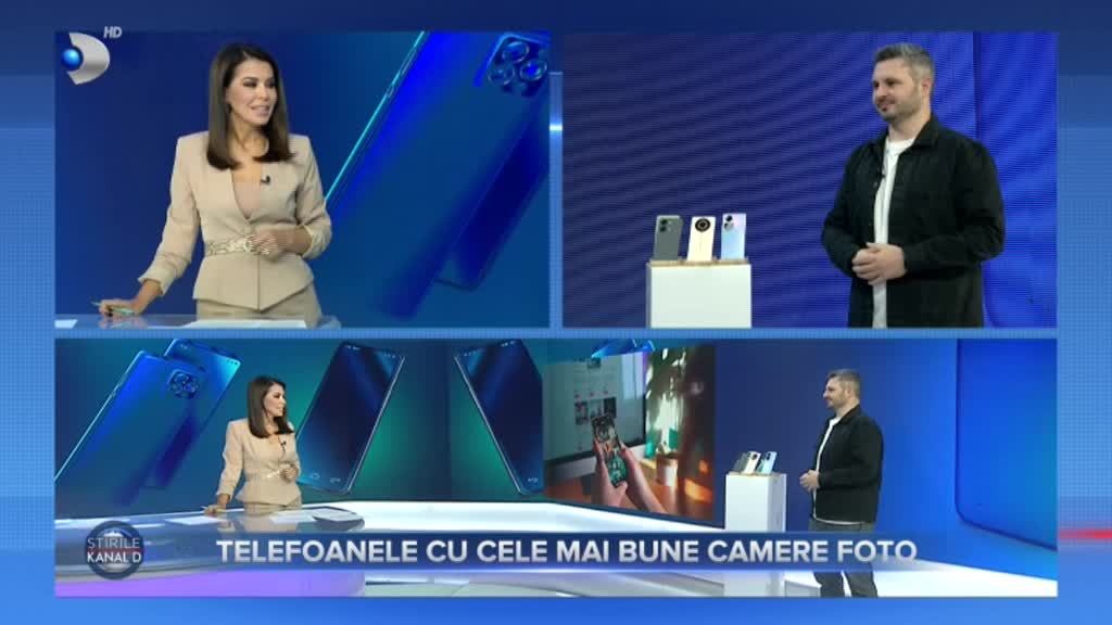 Simona Pătruleasa, prezentator Știrile Kanal D: „Ați adus în platou astăzi mai multe telefoane, respectiv 5 telefoane. Vă rog să ne spuneți ce anume este deosebit la ele? Cât costă fiecare?”