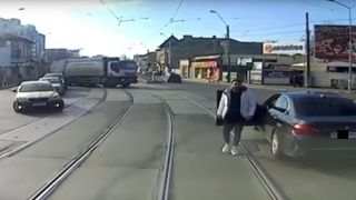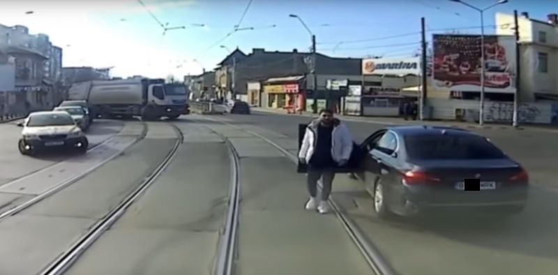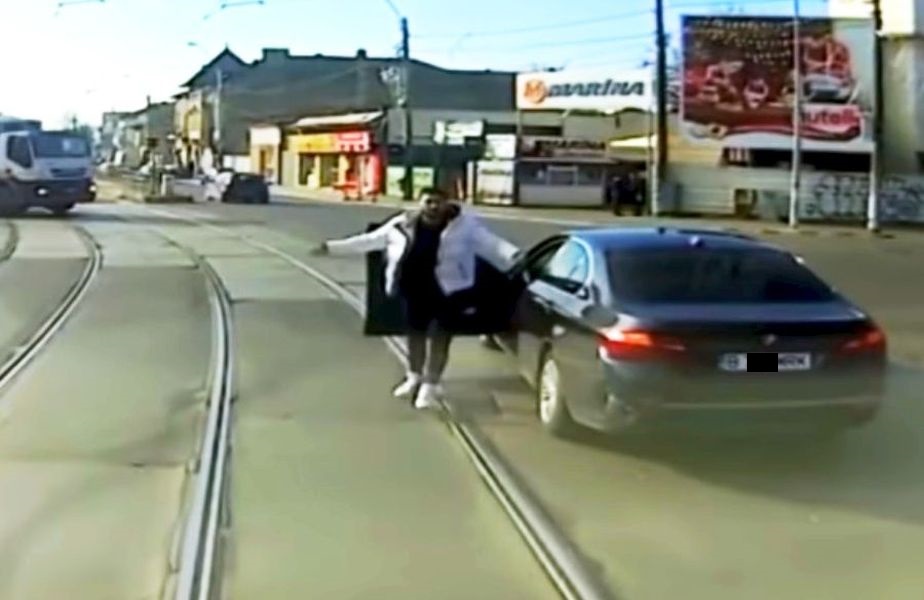 Șmecherul cu BMW care a blocat un tramvai în trafic pentru ca ulterior să fie lovit de acesta a făcut o criză de nervi în mediul virtual înainte să-și închidă contul.
