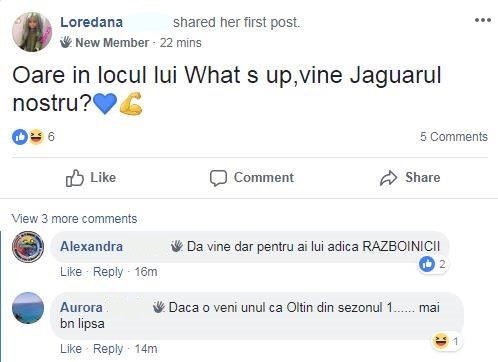 "Oare in locul lui What's Up vine Jaguarul nostru?", s-a intrebat un fan. "Da, vine pentru ai lui. Adica pentru Razboinici!", a fost replica altuia.