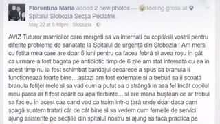 Mamica a scris pe pagina de Facebook ca a fost cu copila la Spitalul Slobozia pentru ca avea febra si rosu in gat, asa ca medicii i-au administrat antibiotic timp de 6 zile.