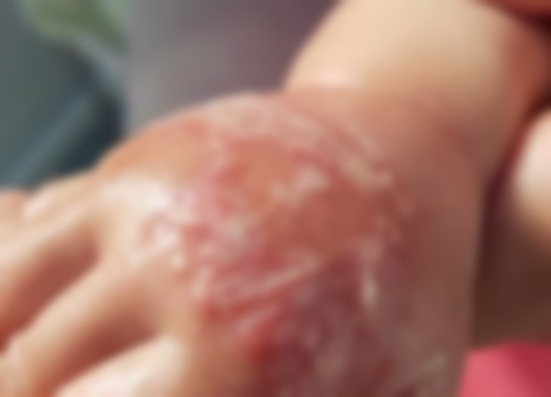 Dupa externare, i-au sos branula si a strans-o atat de tare incat copilul pare oparit cu apa fierbinte.