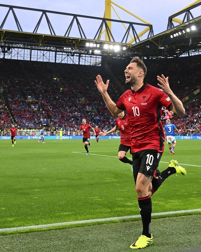 Albania, aflată la a doua sa calificare la Campionatul European, mai marcase o singură dată la EURO, în 2016, când învingea România cu 1-0.