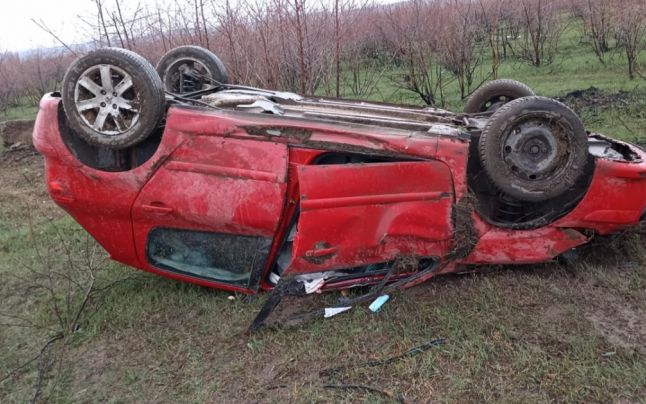 Un șofer începător a fost rănit pe centura Buzăului. Mașina în care se afla s-a răsturnat.