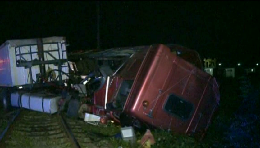 2 din 3 | Soferul unui TIR a scapat cu viata ca prin minune dupa ce a ajuns pe calea ferata si a fost lovit de tren